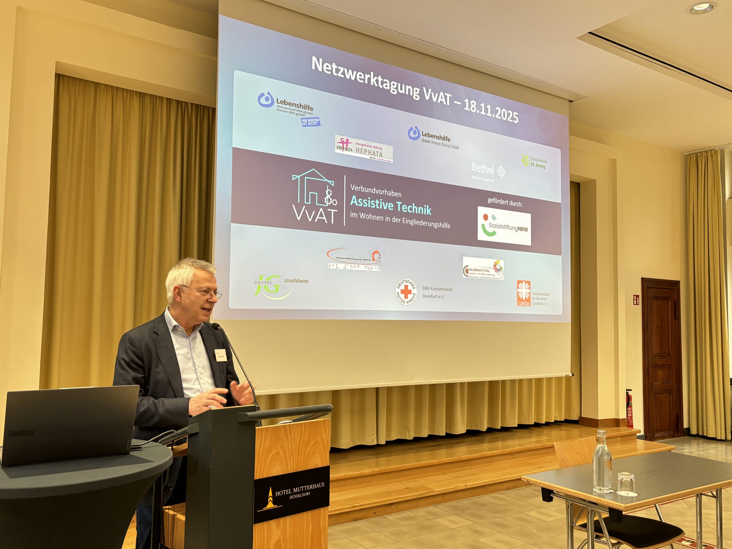 Am 18. November 2025 kamen die Projektbeteiligten im Verbundvorhaben Assistive Technik im Wohnen in der Eingliederungshilfe (VvAT) im Hotel Mutterhaus in Düsseldorf zusammen und diskutierten aktuelle Projektstände und Ergebnisse.